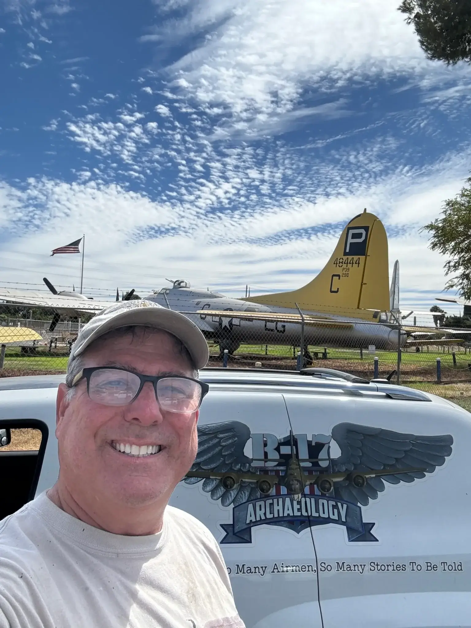 We are B-17 Archaeology and our mission statement is the same. “So Many Missions, So Many Airmen, So Many Stories To Be Told”. Let me explain the whole “Surviving Warbirds” concept. While I was at Palm Springs Air Museum filming the episode of “Surviving B-17’s” my Director who is also a Historian and a Curator with years of experience asked me a simple question. “What are you going to do after you film all the B-17’s”, a total of 50, at the time? I didn’t have an answer and it took me a minute to come up with I could do a revisit if there was a new restoration of paint job, but I would be stuck at 55 total episode.